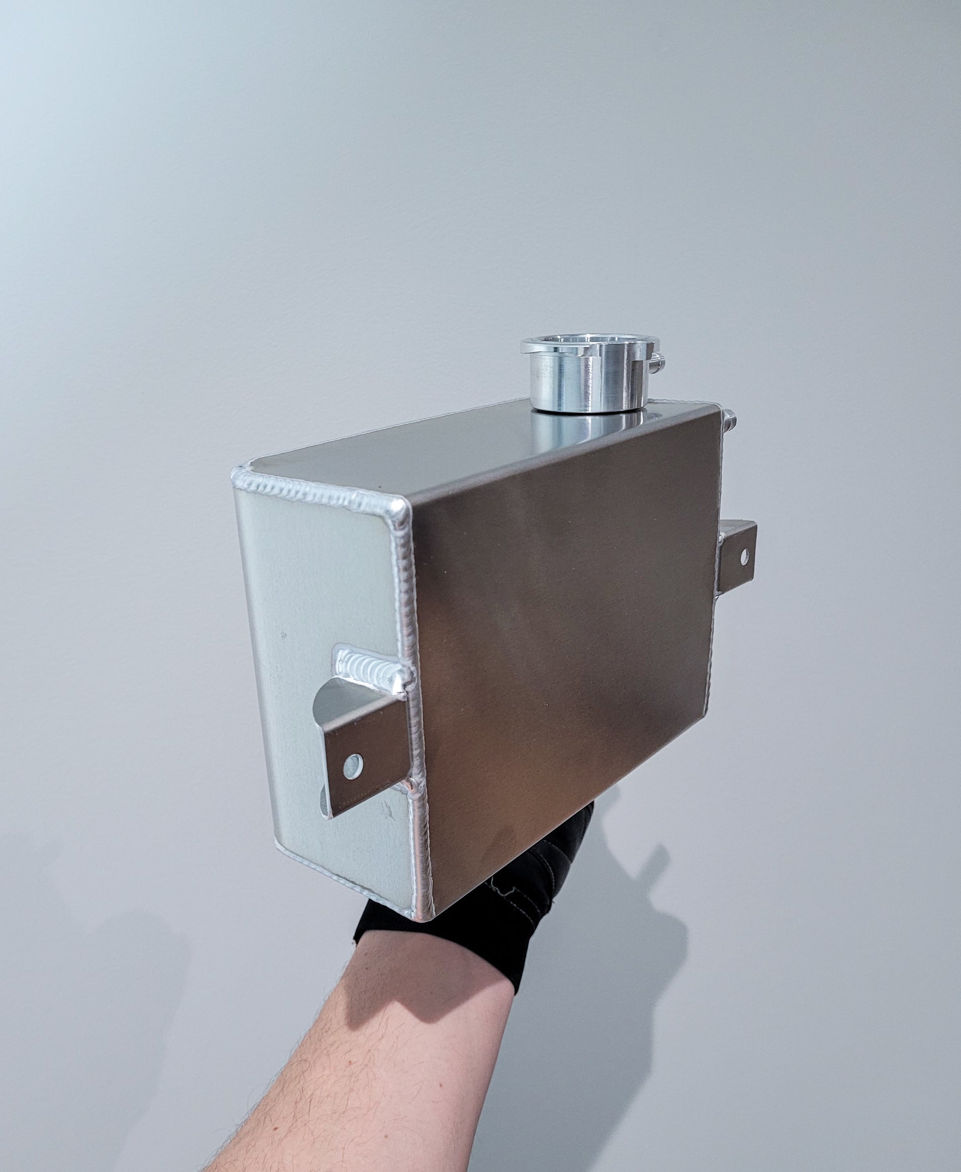 Designed and fabricated in the UK by The Alloy Shed, this compact 2L+ aluminium header tank is built for reliable performance in high-demand cooling systems.